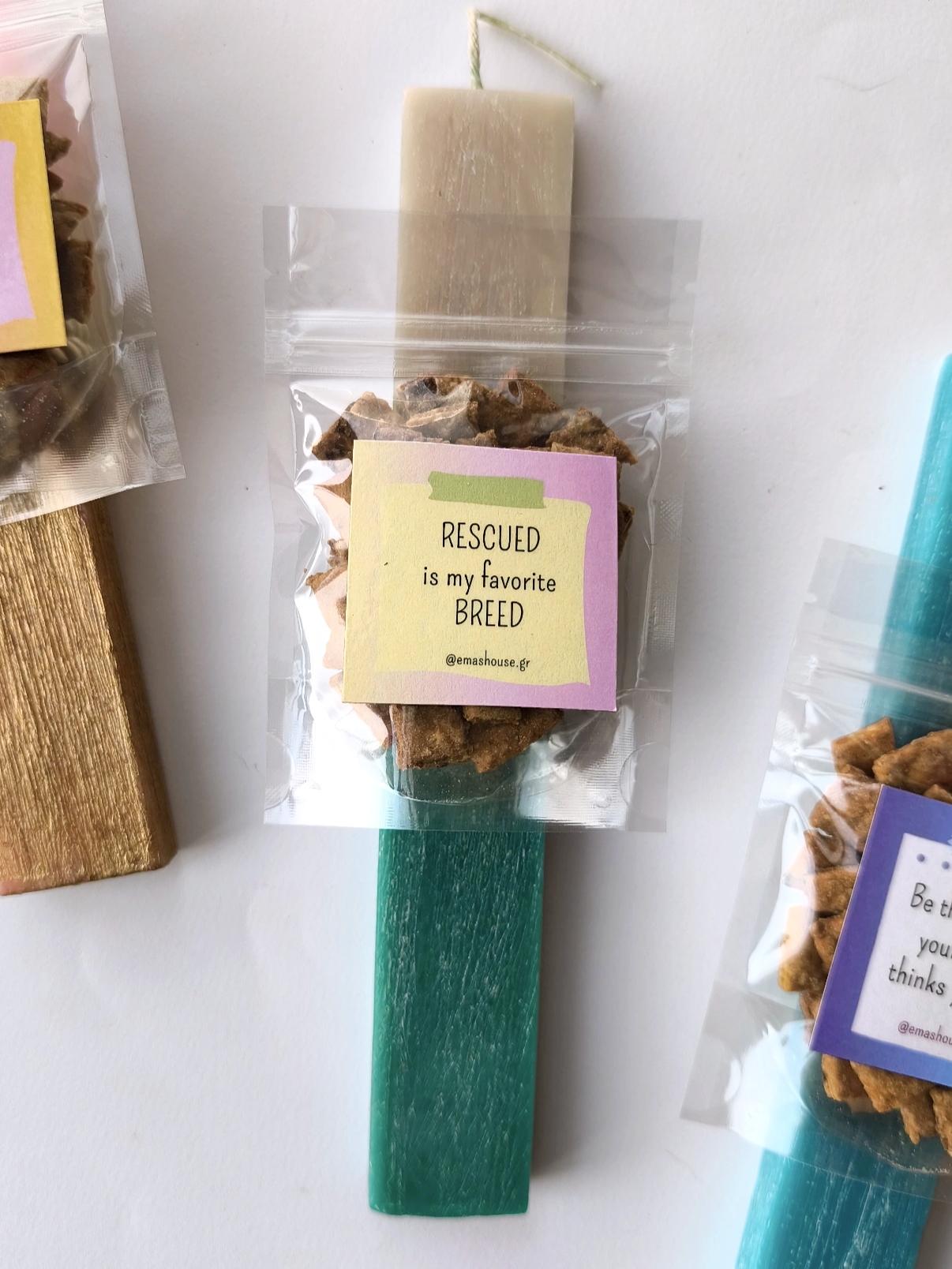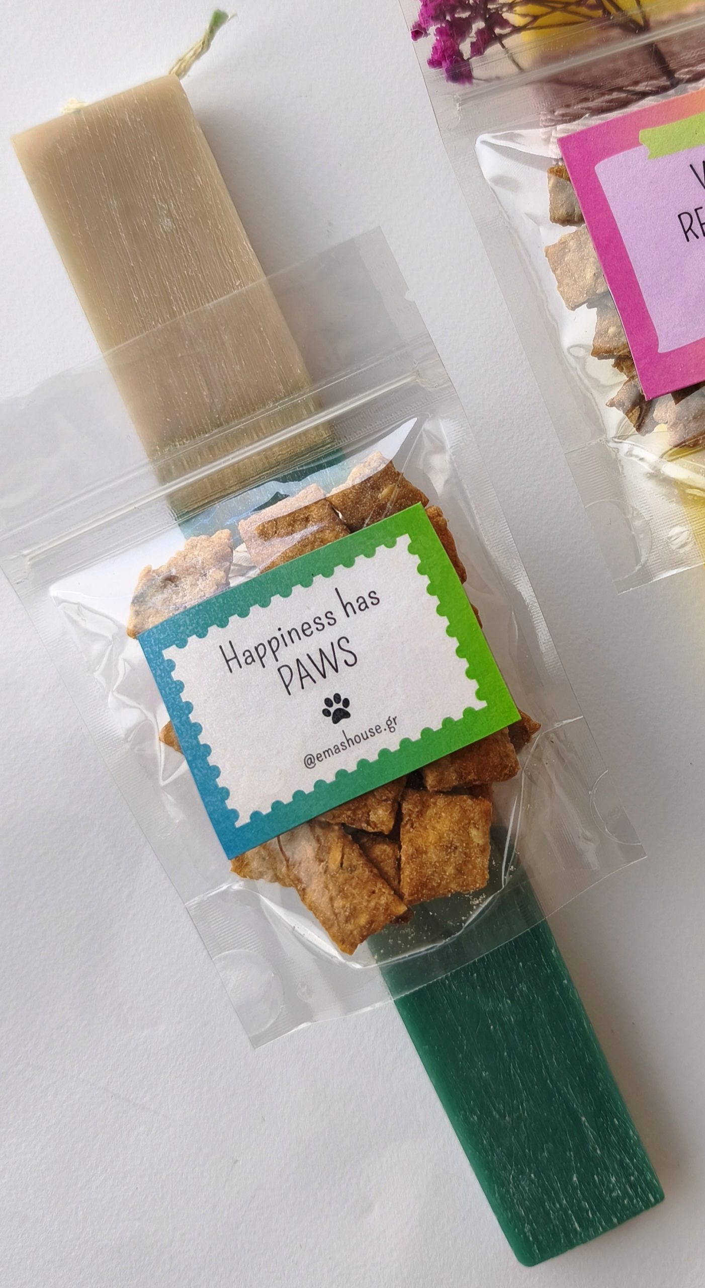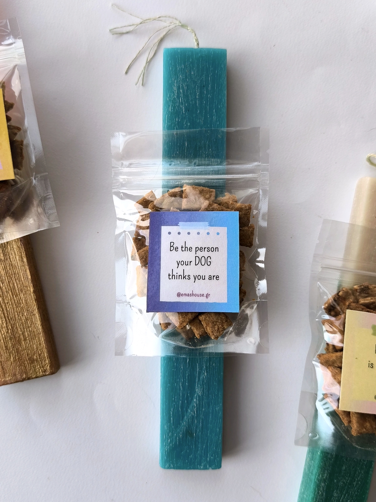 Χειροποίητη λαμπάδα σε διάφορα χρώματα, με μαγνητάκι ψυγείου για dog lovers και πακέτο λιχουδιών με μοσχάρι (γιατί Πάσχα έχουμε στο κάτω κάτω!)